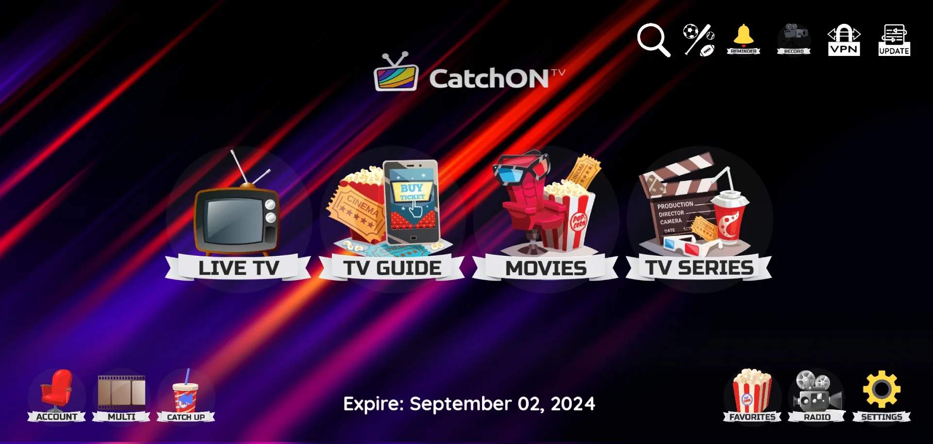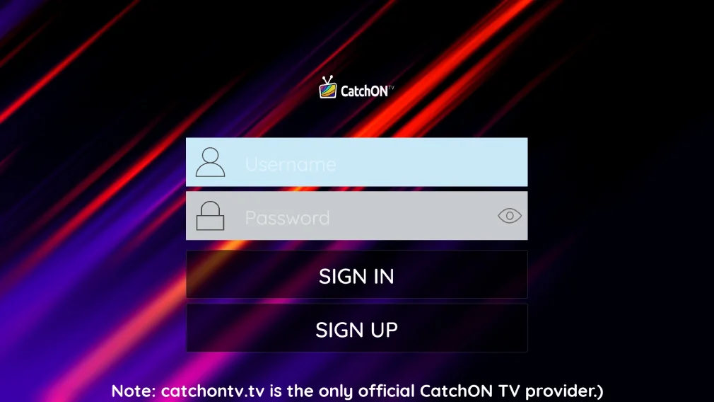 Enter the username and password you received from our website to log in. If you don’t have an account yet, sign up now to get your credentials and start enjoying CatchOnTV!