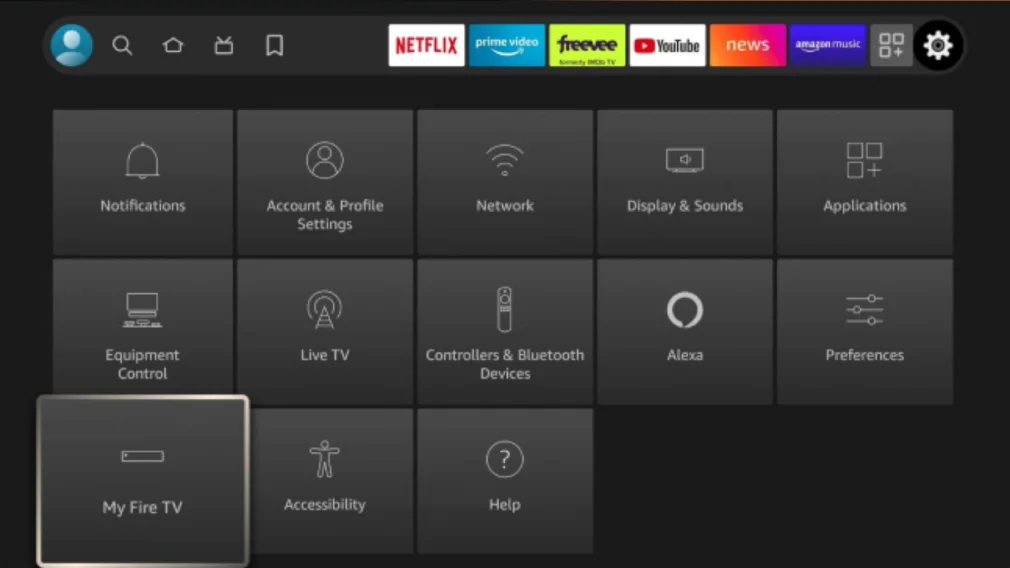 From the home screen, navigate to Settings > My Fire TV.